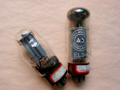 几种在音频放大器里常用的电子管图示三: 三颗中功率功率放大管:6P3P,EL34